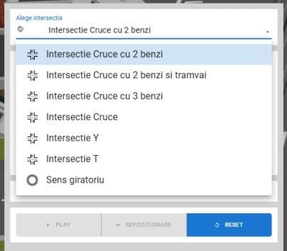 Poți alege diverse tipuri de intersecții – simple, semaforizate, cu sens giratoriu, în cruce, în T etc.