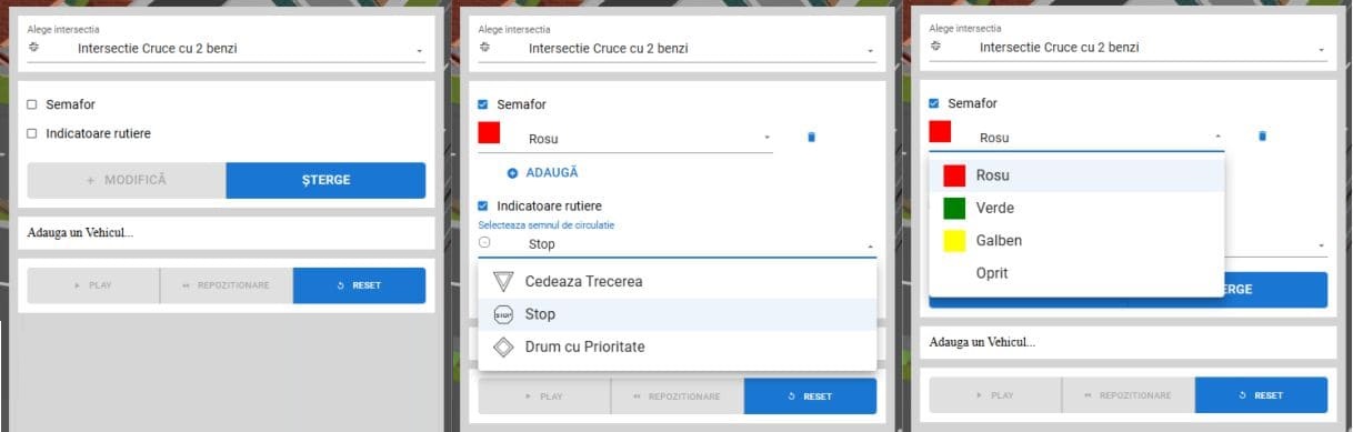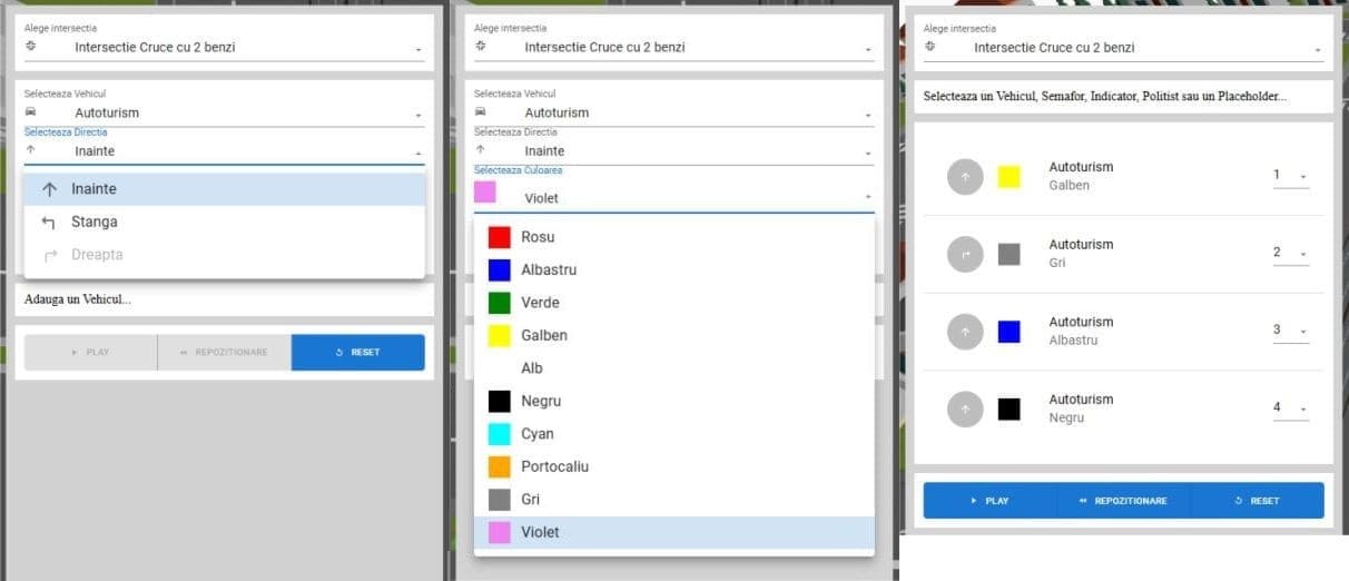 - Selectezi direcția de deplasare pentru fiecare vehicul
